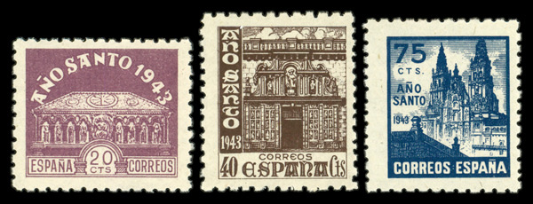 7947 nh 730-732 image1944, st. James Issue 20c red violet 40c dull brown 75c bright blue complete (Scott 730-732), complete set of singles, o.g., never hinged, Fine to Very Fine.