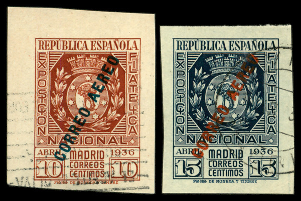 7948 O C88-C89 imageAirmail, 1936, 10c-15c Madrid Philatelic Exhibition complete (Scott C88-C89), complete set of single, Fine to Very Fine.