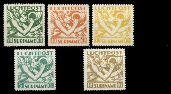 7950 og 15-C19 image1941, Allegory of Flight thick paper type (Scott 15-C19), complete set of singles, o.g., hinged, Fine to Very Fine.