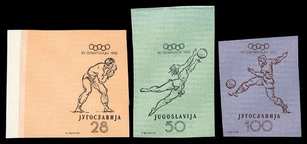 7986 nh 359-364 image1952, Helsinki Olympics, imperf., complete (Scott 359-364), set of 6, o.g., never hinged, Very Fine.