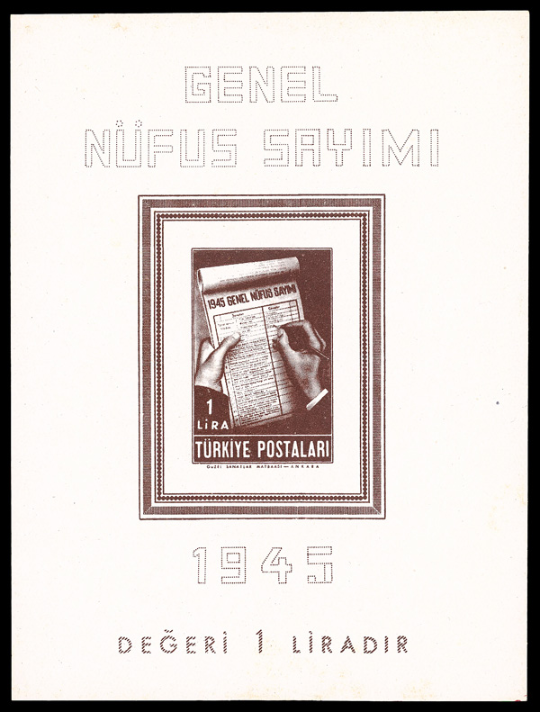7982 og 933 image1945, 1L chocolate Census, souvenir sheet (Scott 933), slightly disturbed o.g., Extremely Fine.
