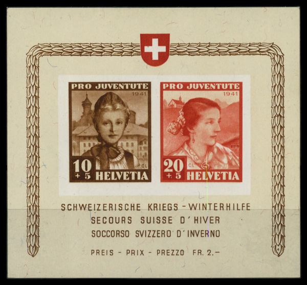 7970 O B116 image1941, Pro Juventute souvenir sheet (Scott B116), Extremely Fine.