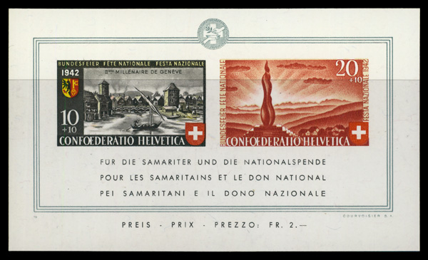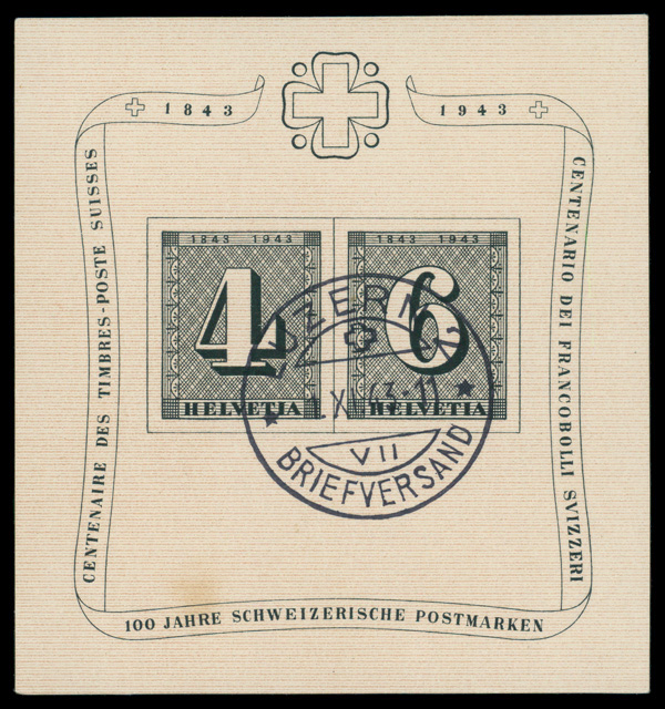 7973 O B131 image1943, Zürich Stamp Centenary souvenir sheet (Scott B131), Extremely Fine.
