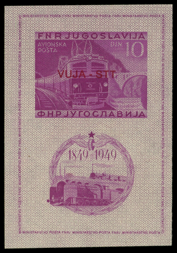 7989 ogbl C17 image1950, Centenary of Yugoslav railroads (Scott C17), imperf souvenir sheet of 1, o.g., hinged, Fine to Very Fine.