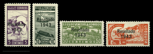 7984 nh 380-383 image1943, Life Scenes overprinted "Resellado 1943" complete (Scott 380-383), complete set of singles, o.g., never hinged, Fine to Very Fine.