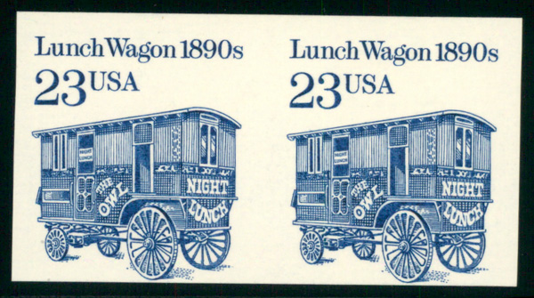 7241 nh 2464b image1991, Transportation Issue, 23¢ Lunch Wagon, prephosphored coated paper, imperf. pair (Scott 2464b), o.g., never hinged, Fine.