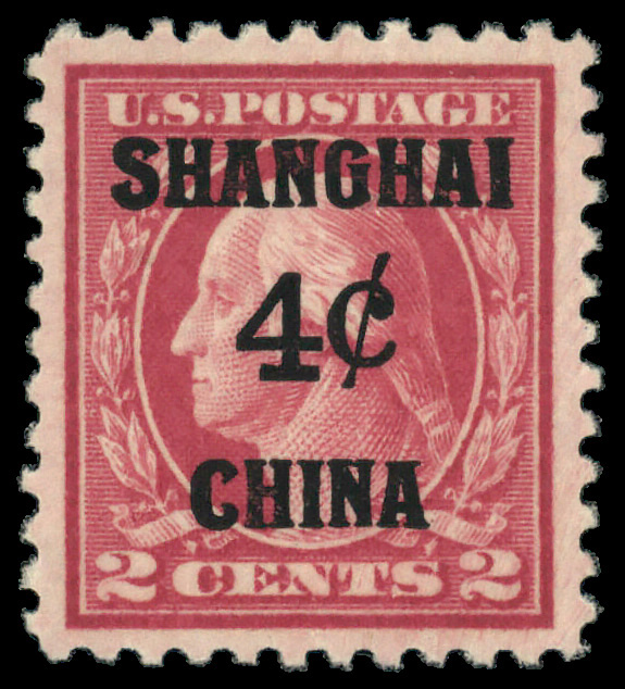 7273 og K2 imageOffices in China, 1919, 4¢ on 2¢ rose (Scott K2), o.g., lightly hinged, Very Fine to Extremely Fine.