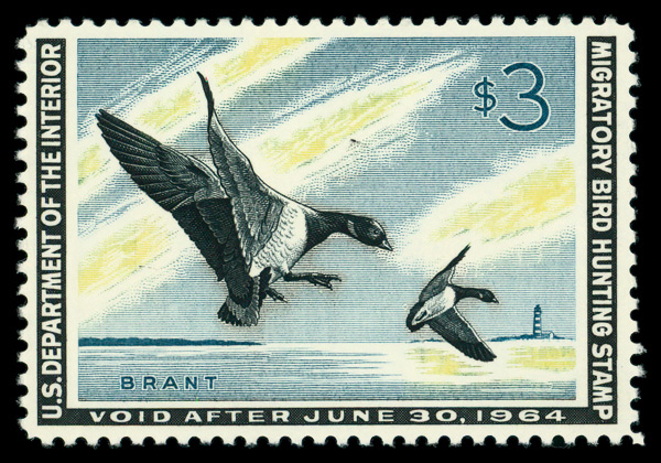 7324 og RW30 imageFederal Duck Stamp, 1963, $3 Brants (Scott RW30), slightly disturbed o.g., Very Fine.