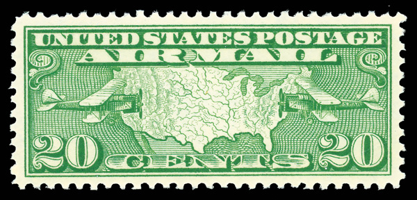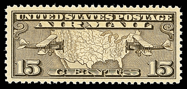 8668 nh C1 imageAirmail, 1918, 6¢ orange (Scott C1), o.g., never hinged, Extremely Fine.