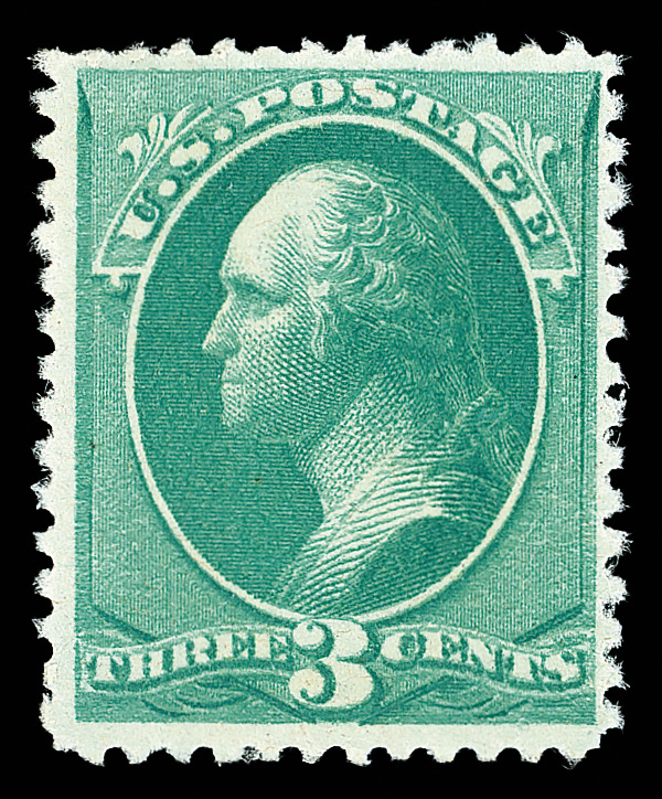 8053 og 184 image1879, 3¢ green, A.B.N.C. printing (Scott 184), o.g., lightly hinged, sound and Post Office fresh with rich color and superior centering, Extremely Fine.