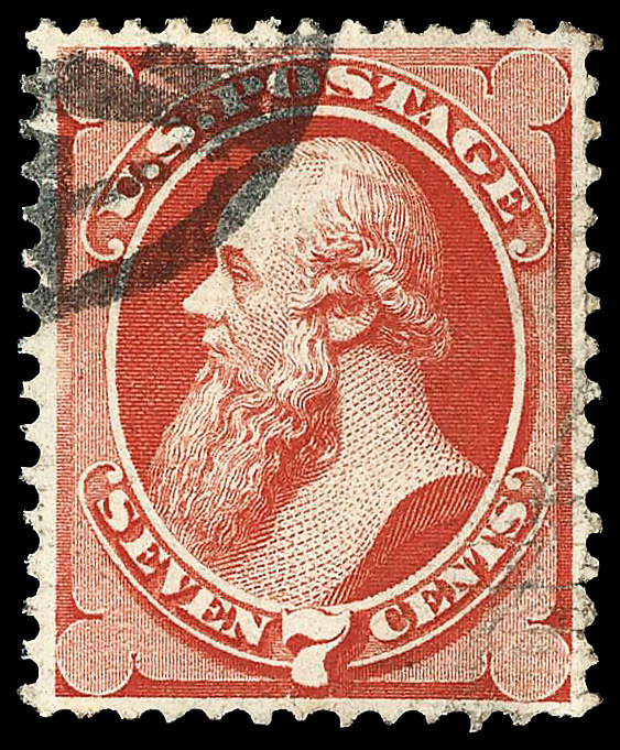 8049 O 160 image1873, 7¢ orange vermilion, C.B.N.C. printing (Scott 160), blue target cancel; minor perf faults, Extremely Fine.