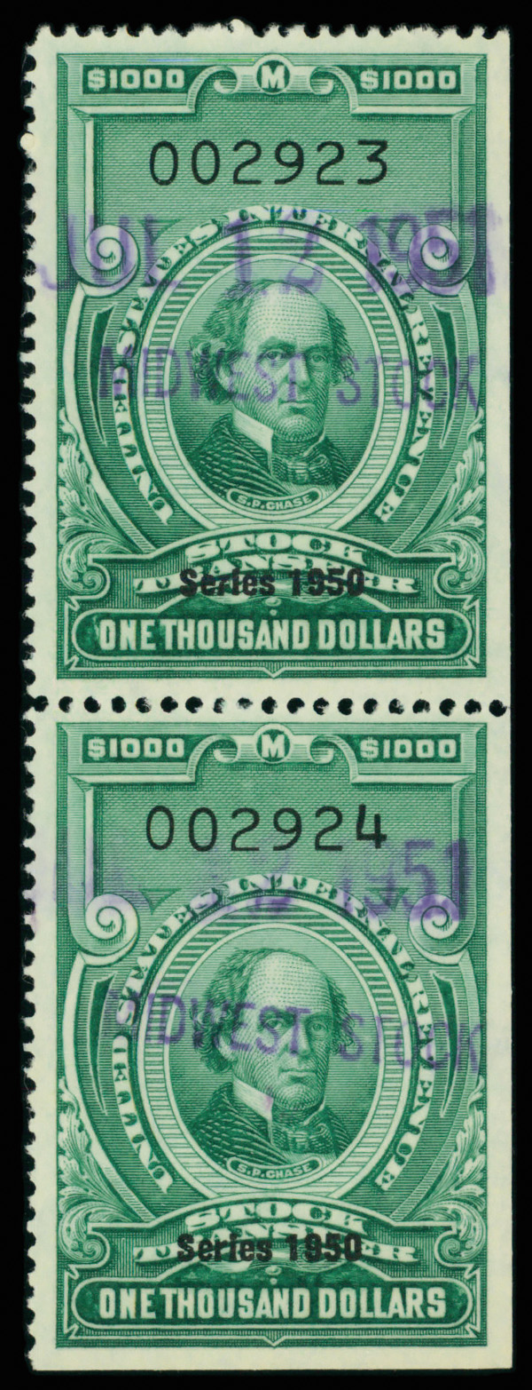 8804 O RD335 imageStock Transfer, 1950, $1,000 Chase (Scott RD335), vertical pair, Very Fine.