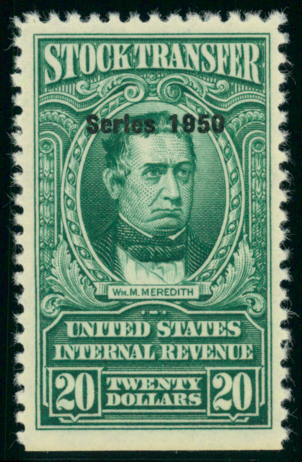 8803 ng RD329 imageStock Transfer, 1950, $20 Meredith (Scott RD329), unused without gum; straight edge at bottom, Very Fine.