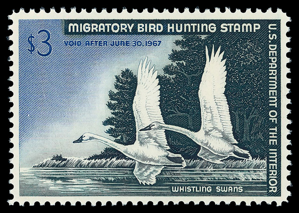 8816 nh RW33 imageFederal Duck Stamp, 1966, $3 Whistling Swans (Scott RW33), o.g., never hinged, Extremely Fine.