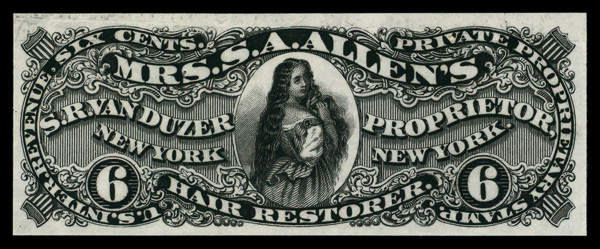 8812 P RS250P3 imageVan Duzer, S.R., 6¢ black, plate proof on India (Scott RS250P3), without gum as issued; crease, Very Fine.