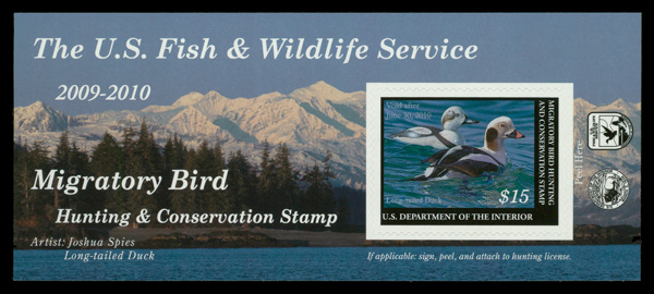 8840 nh RW76A imageFederal Duck Stamp, 2009, $15 Long-Tailed Duck, self-adhesive (Scott RW76A), o.g., never hinged, Extremely Fine.