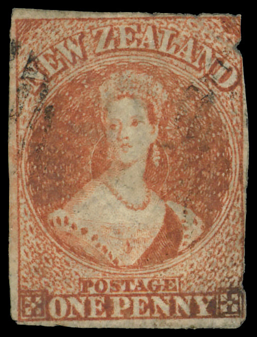 9005 O 11 image1862, Queen Victoria "Chalon Head", 1d orange vermilion, imperf (Scott 11), Large Star watermark; corner creases, Fine.