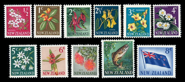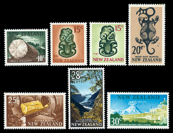 9009 nh/og 382//404 image1967-68, ½c-$2 Definitives, without 30c (Scott 382//404), o.g., some never hinged / some hinged, Fine to Very Fine.