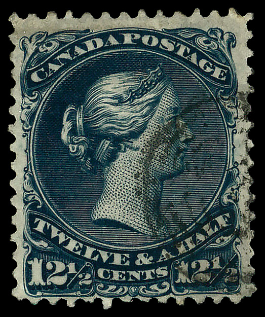 9025 O 28 image1868, Large Queen, 12½¢ blue (Scott 28), Fine.