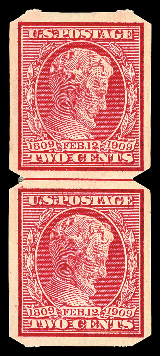 8155 og 368 image1909, 2¢ Lincoln, U.S. Automatic Vending type I perfs (Scott 368 var.), guide line pair, o.g., lightly hinged, pristine and bright positional, Extremely Fine.