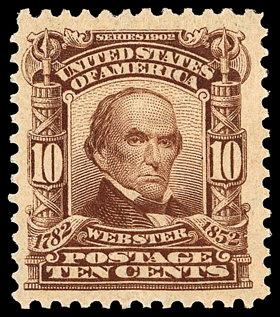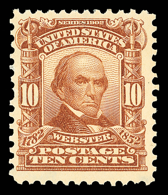 8143 nh 332 image1908, 2¢ carmine, D.L. watermark (Scott 332), left margin single with part imprint, star and running initials, o.g., never hinged, a glorious positional, with exceptional color depth and sharp detail, sound with appealing centering, Extremely Fine to Superb. (Image) Suggested Bid $80