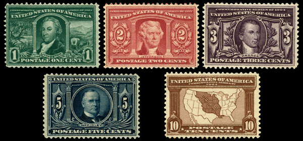 8136 nh 323-327 image1904, Louisiana Purchase complete (Scott 323-327), set of 5, o.g., never hinged, Fine to Very Fine.