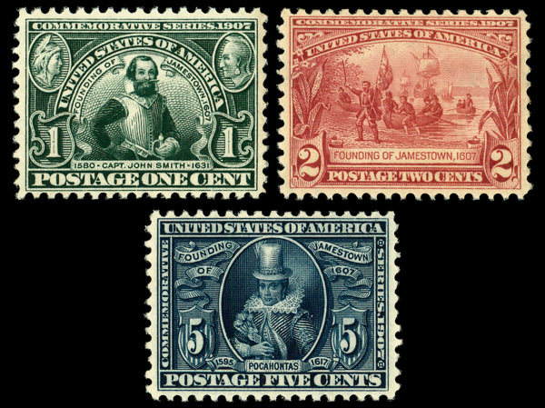 8139 nh 328-330 image1907, Jamestown complete (Scott 328-330), set of 3, o.g., never hinged, Very Fine.