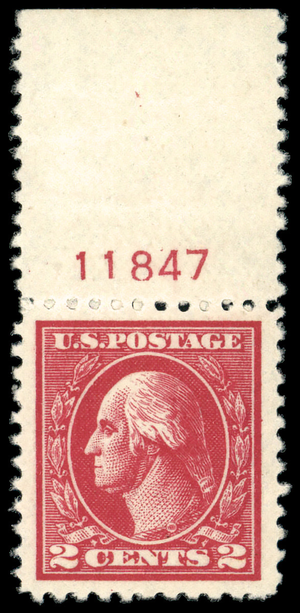 8278 nh 528 image1918, 2¢ carmine, type Va, offset printing (Scott 528), plate number single, o.g., never hinged, jumbo margins, Very Fine to Extremely Fine. (Image) Suggested Bid $45