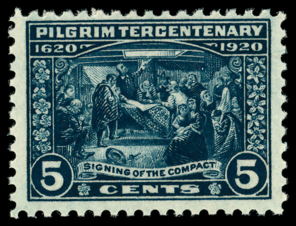 8309 nh 550 image1920, 5¢ Pilgrim (Scott 550), o.g., never hinged, Fine to Very Fine.