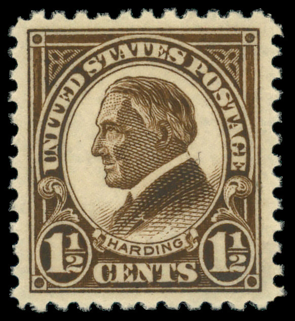 8314 nh 553 image1925, 1½¢ Harding (Scott 553), o.g., never hinged, Very Fine to Extremely Fine. (Image) Suggested Bid $20