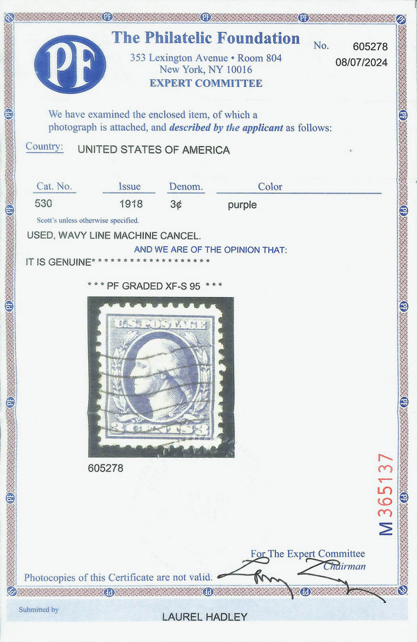 8288 O 530 image1918, 3¢ purple, type IV, offset printing (Scott 530), Extremely Fine to Superb, with 2024 P.F. certificate graded XF-SUP 95.