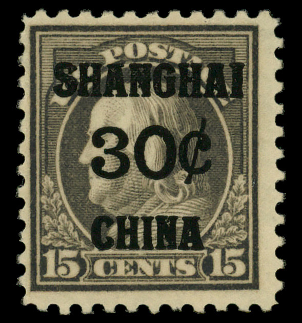 7478 og K12 imageOffices in China, 1919, 30¢ on 15¢ gray (Scott K12), o.g., lightly hinged, Fine.