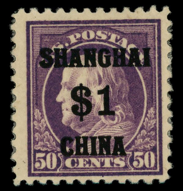 7480 ng K15 imageOffices in China, 1919, $1 on 50¢ light violet (Scott K15), stuck down, Fine to Very Fine.