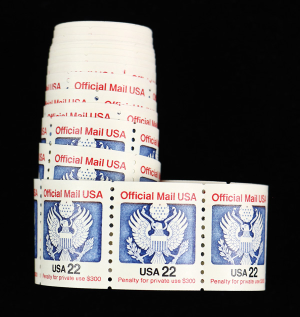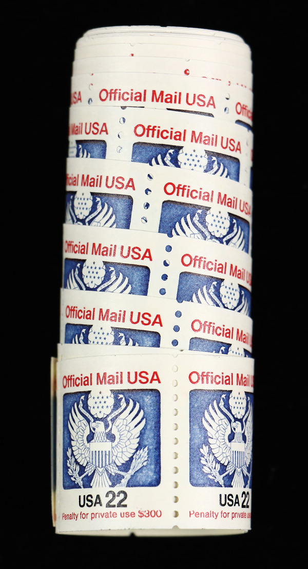 7492 nh O136 imageOfficial Mail, 1985, 22¢ coil, dull gum (Scott O136), 100 examples, o.g., never hinged, Extremely Fine.