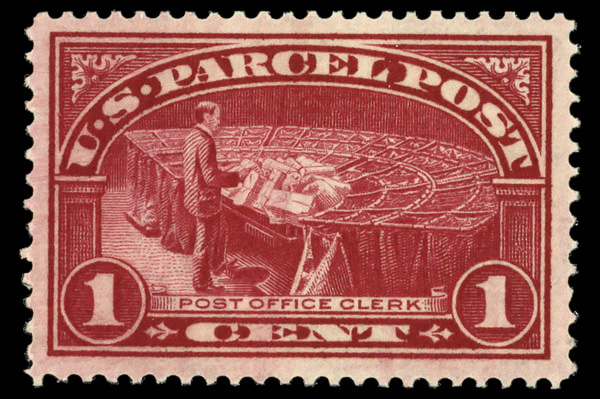 7500 nh Q1 imageParcel Post, 1913, 1¢ Post Office Clerk (Scott Q1), o.g., never hinged, Extremely Fine.
