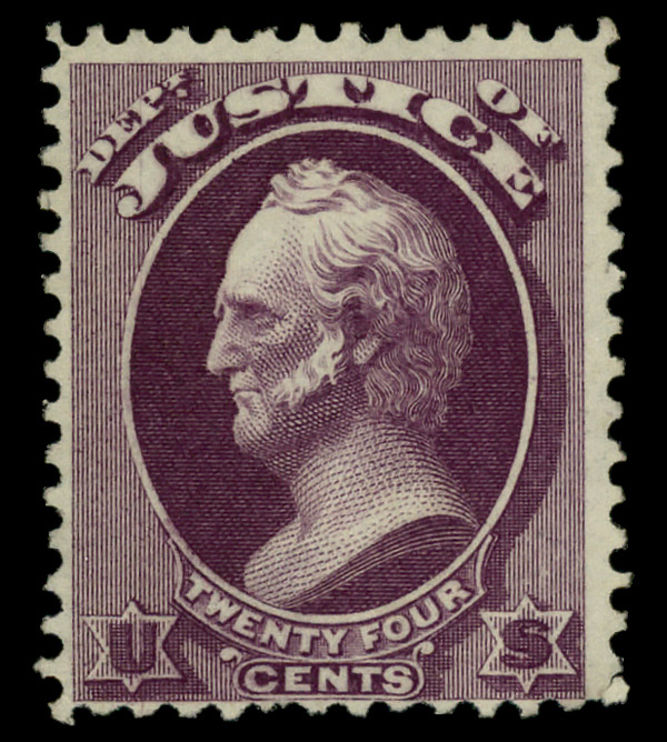 7487 ng O32 imageJustice Dept., 1873, 24¢ purple (Scott O32), unused without gum, Very Good to Fine.