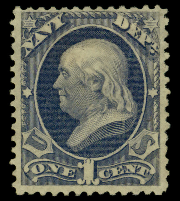 7488 og O35 imageNavy Dept., 1873, 1¢ ultramarine (Scott O35), disturbed o.g., Fine.