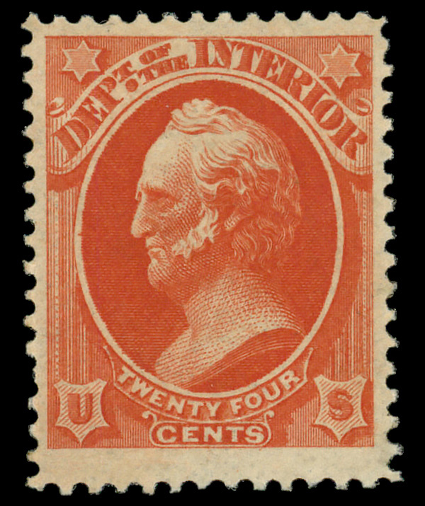 7486 og O22 imageInterior Dept., 1873, 24¢ vermilion (Scott O22), disturbed o.g., Very Fine.