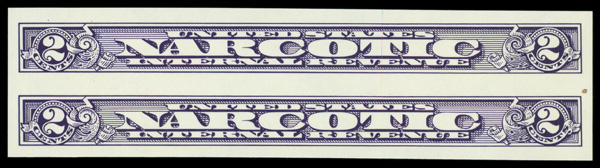 7532 nh RJA80a imageNarcotic Tax, 1963, 2¢ violet, imperf (Scott RJA80a), vertical pair, o.g., never hinged, Extremely Fine.