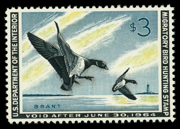 7536 nh RW30 imageFederal Duck Stamp, 1963, $3 Brants (Scott RW30), o.g., never hinged, Very Fine.