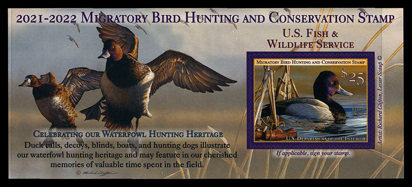 7548 nh RW88A imageFederal Duck Stamp, 2021, $25 Lesser Scaup, souvenir sheet of 1 (Scott RW88A), o.g., never hinged, Extremely Fine.
