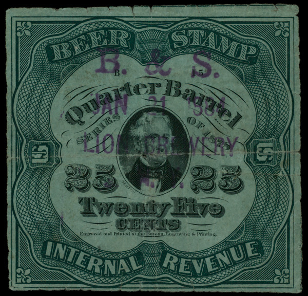 7528 O REA77b imageBeer, 1902, 25¢ green on pale green (Scott REA77b), Fine to Very Fine.