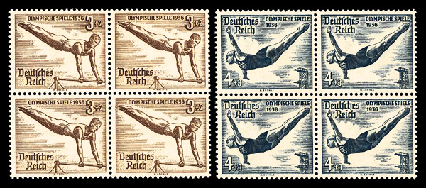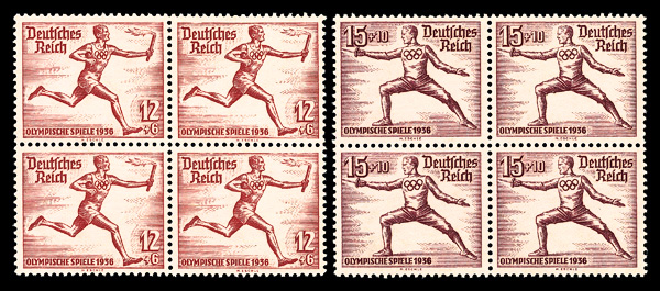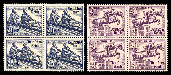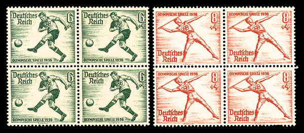 7819 nhbl B82-B89 image1936 Summer Olympics complete (Scott B82-B89), blocks of 4, o.g., never hinged, Very Fine.