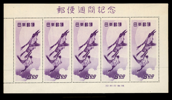 7840 nh 479a image1949, Philatelic Week, miniature sheet of 5 (Scott 479a), o.g., never hinged (gum bends), Extremely Fine.
