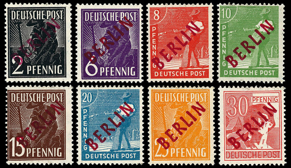 7828 nh 9N21-9N34 image1949 Red Overprints complete (Scott 9N21-9N34), set of 14, o.g., never hinged, Fine to Very Fine.