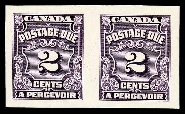 8565 nh J17a imagePostage Due, 1935, 4¢ dark violet, imperforate pair (Scott J17a), o.g., never hinged, pristine top right corner horizontal pair with part arrow, Very Fine, only 100 pairs issued, with 2023 P.S.E. certificate graded VF 80.