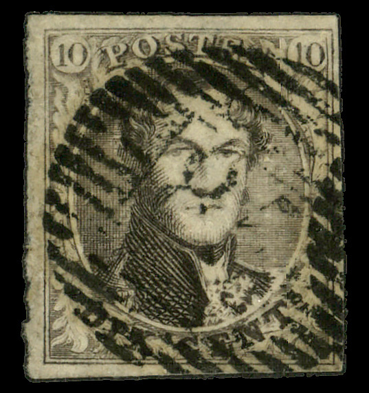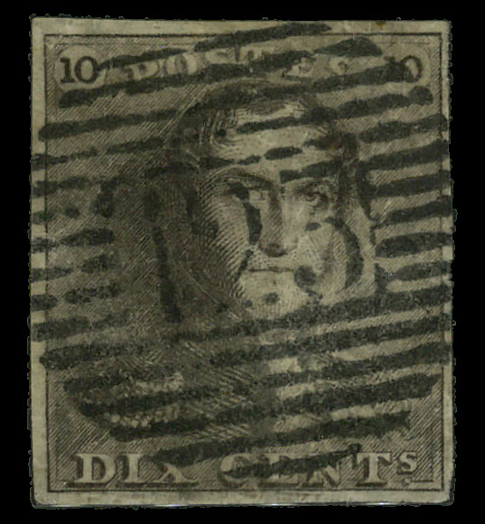 8582 O 1 image1849, 10c brown (Scott 1), single, Numerical cancel 123., Extremely Fine to Superb.