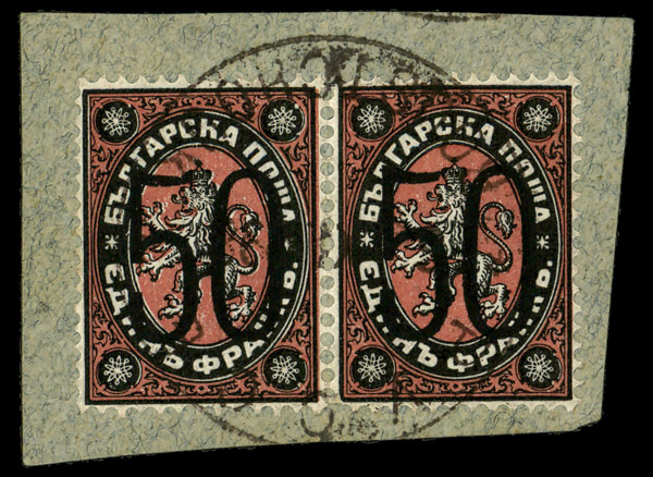 8591 Z 22 image1885, Crowned Lion, 50s on 1fr black & red (Scott 22), pair, Extremely Fine.