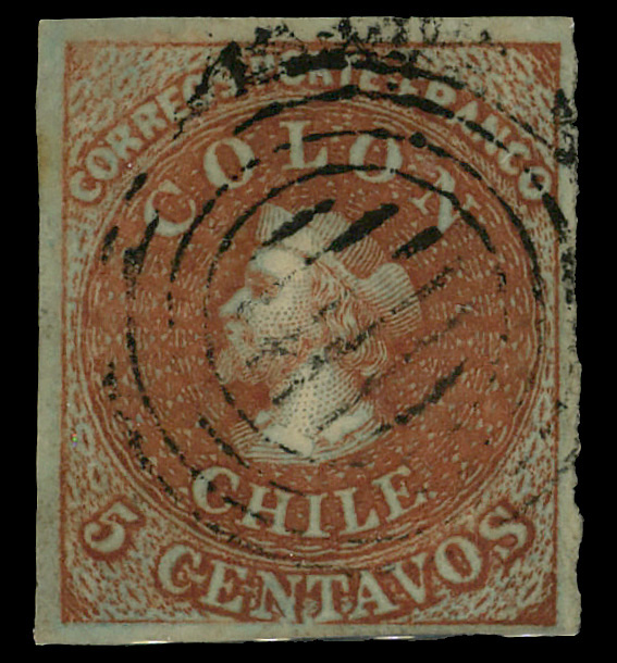 8597 8 image1855, 5c brown red on blue paper Christopher Columbus (Scott 8), single, Very Fine to Extremely Fine.