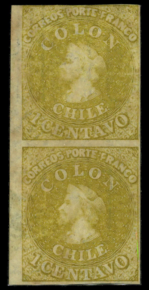 8593 og 11b image1862, Columbus, 1c greenish yellow (Scott 11b), watermark a, vertical pair, o.g., lightly hinged, Fine to Very Fine.